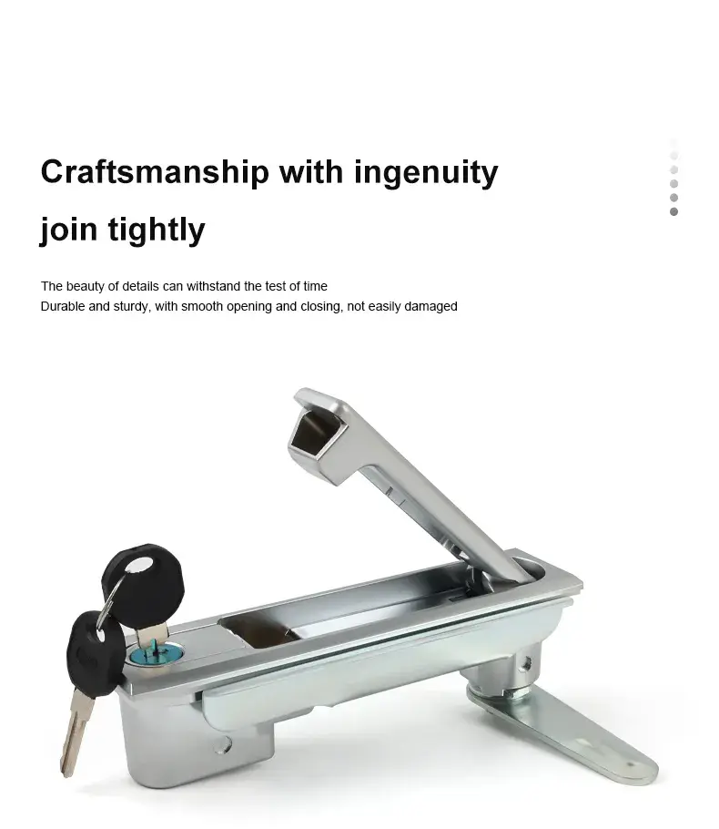 Şkaf Qapı Düz Snap Kilidinin funksiyası, kabinet qapısının açılmasını və bağlanmasını təmin etməkdir. Kilid əlcəklərin geyilməli olduğu sənaye mühitləri üçün asan və uyğun olan bir düymə açarı ilə təchiz edilmişdir. Daxili yay kilid dilinin avtomatik olaraq yenidən qurulmasına imkan verir, buna görə kabinet qapısını bağlayarkən heç bir əlavə əməliyyat tələb olunmur.