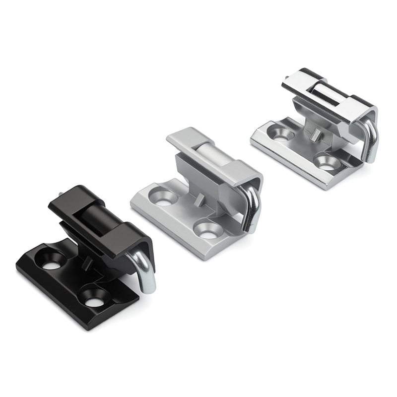 Kart tipli plug-in elektrik kabinetinin menteşələri alüminium ərintisi və ya sink ərintisindən hazırlanmışdır. Alüminium ərintisi qara, parlaq xrom və tutqun rəngdədir, sink ərintisi isə qara və mat rəngdə olan bir çiləmə prosesi ilə, daha yüksək mexaniki güc təklif edir.