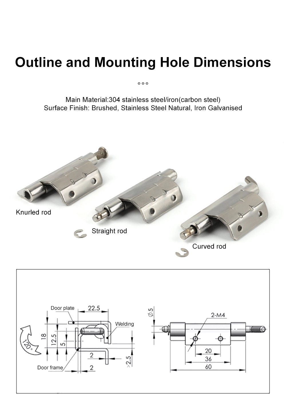Paylama Şurasının Dönən Menteşəsi düz çubuq, əyilmiş çubuq və dırnaqlı çubuqla mövcuddur.