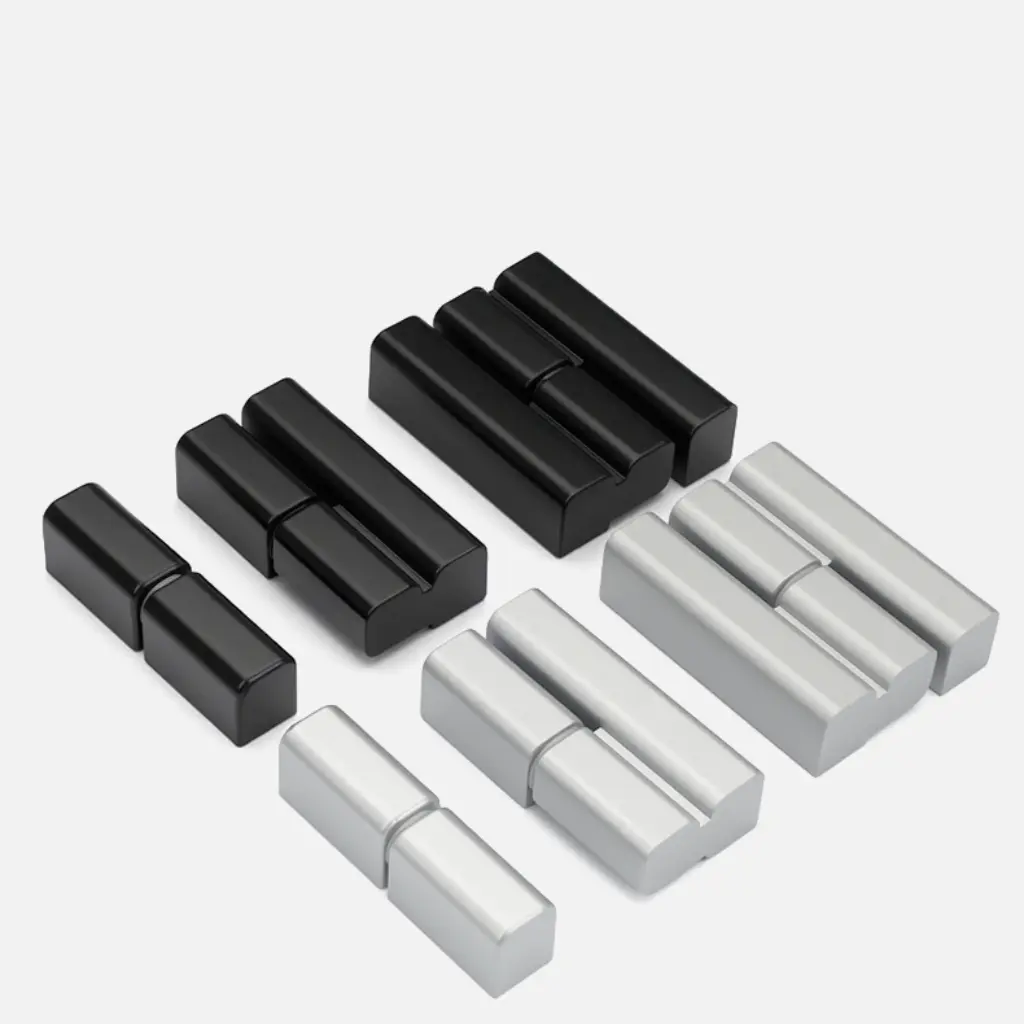 Elektrik kabineti menteşələri sink ərintisi və ya paslanmayan poladdan hazırlanmışdır, üç rəng, sink ərintisi qara, sink ərintisi parlaq xrom və paslanmayan poladdan orijinal rəng (fırçalanmış səth müalicəsi) təklif olunur. Sink ərintisi materialı yüksək gücə malikdir və səth xrom örtüklü və ya plastik püskürtülmüşdür.